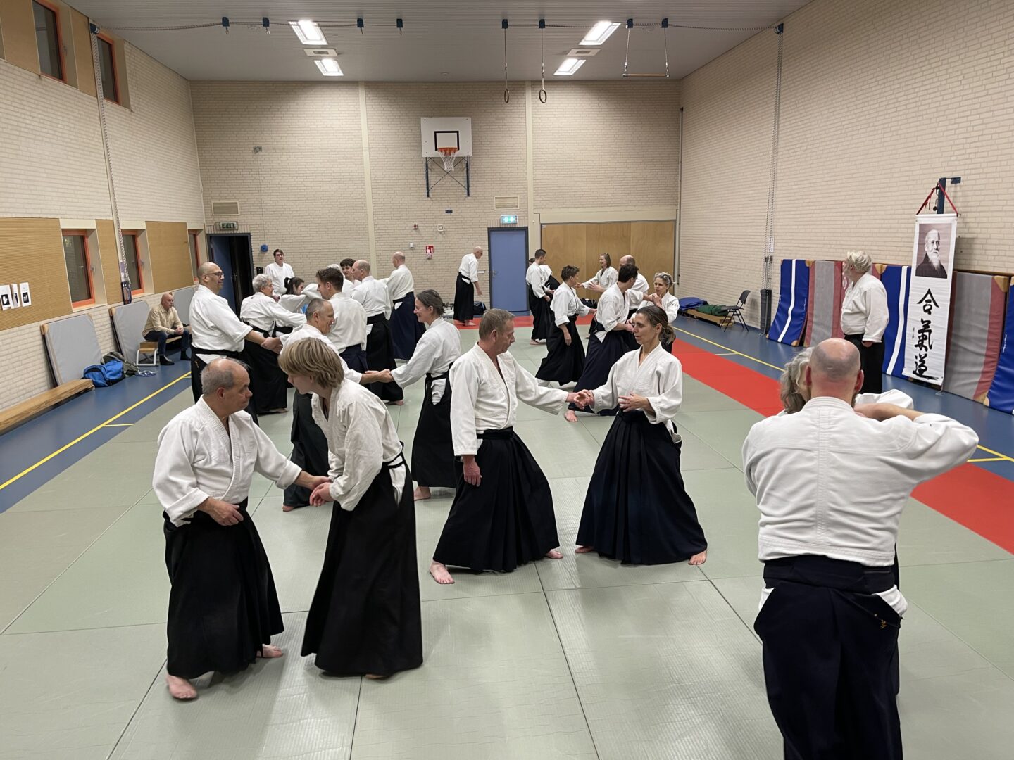 De opkomst was groot en er was een stevige vertegenwoordiging van onze partner Dojo in Voorburg. Het was een boeiende les en het is altijd fijn om te zien dat Aikido Alphen goed past in het raamwerk zoals dat door Wilko Vriesman en zijn leraar Christian Tissier neergezet is. Wilko, erg bedankt en wat ons betreft graag voor herhaling vatbaar!